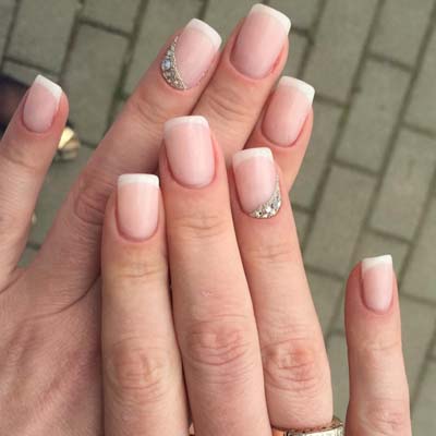 Τέλος, μπορείτε να μεταμορφώσετε διακριτικά το γαλλικό στα νύχια σας προσθέτοντας μερικά στρας.