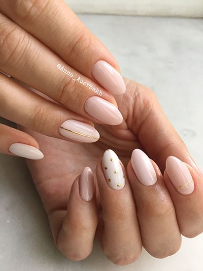 Αφού λοιπόν επιλέξετε το nude χρώμα που θα τα βάψετε, μπορείτε να δημιουργήσετε μικρά και διακριτικά σχέδια όπως λουλούδια, γραμμές και πουά. Εναλλακτικά μπορείτε να ζωγραφίσετε μικροσκοπικά γεωμετρικά σχήματα.