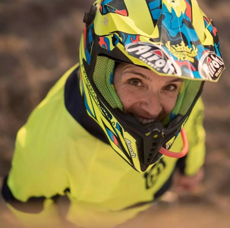 Στην Ελλάδα είμαι η μόνη που ασχολείται με την αγωνιστική οδήγηση σε rally με μοτοσυκλέτα, αλλά και εκτός Ελλάδας οι γυναίκες που συμμετέχουν είναι πολύ λίγες. Οι άντρες οδηγοί με αντιμετωπίζουν πάντα με σεβασμό και εκτίμηση. Πιστεύω ότι αν κάποιος θέλει να ασχοληθεί και να αφιερώσει χρόνο σε κάτι που του αρέσει, που τον γεμίζει ενέργεια και διάθεση, που του δίνει δύναμη να ξεκινήσει την κάθε επόμενη του μέρα, μπορεί να συνδυάσει πολλούς ρόλους και μάλιστα με επιτυχία”.