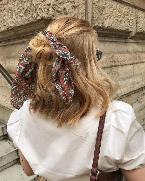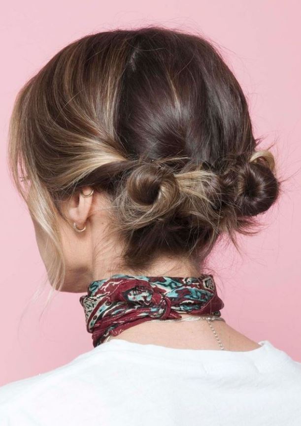 2. Πιάσε τα μαλλιά σου μισά- μισά και πέρασε πάνω από το λαστιχάκι ένα μαντήλι.