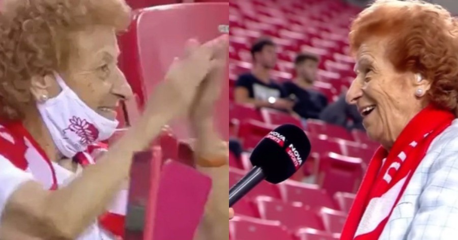 Η 92χρονη φίλαθλος του Ολυμπιακού εμβολιάστηκε μόνο για να βλέπει από κοντά την ομάδα της
