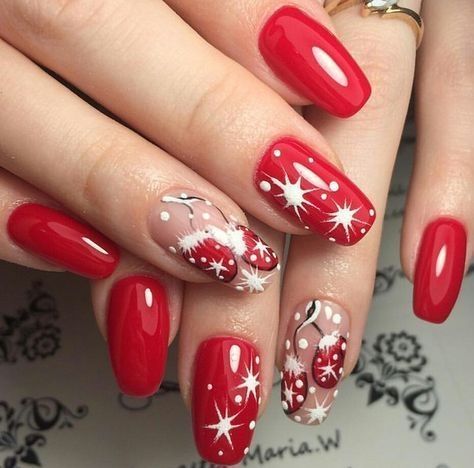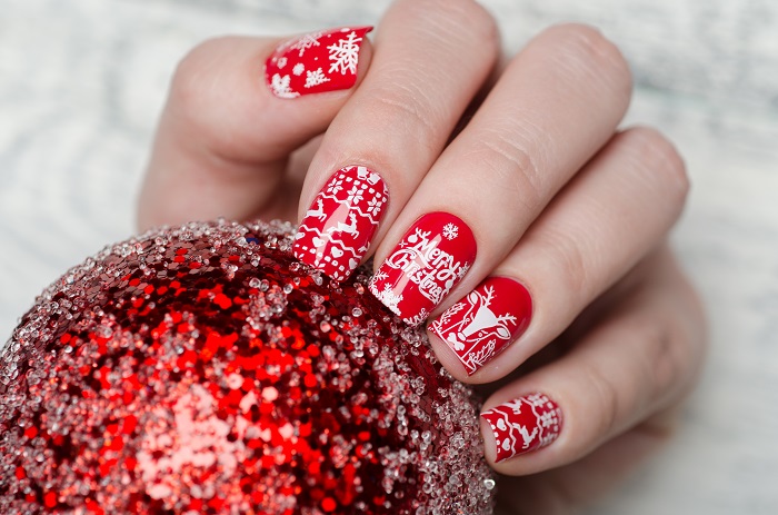 Το κόκκινο είναι το χρώμα των Χριστουγέννων. Επιλέξτε τον συνδυασμό του κόκκινου και του λευκού και αναδείξτε ακόμη περισσότερο το χριστουγεννιάτικο μανικιούρ σας με ταράνδους, χριστουγεννιάτικα δέντρα, χιονονιφάδες κι άλλα χριστουγεννιάτικα σχέδια.