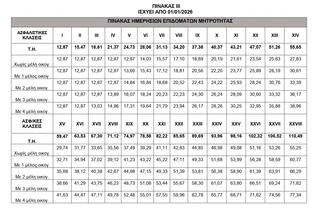 Τα αναπροσαρμοσμένα ποσά προκύπτουν από τη σχετική εγκύκλιο του Υπουργείου Εργασίας, η οποία ισχύει από 1.1.2026.
