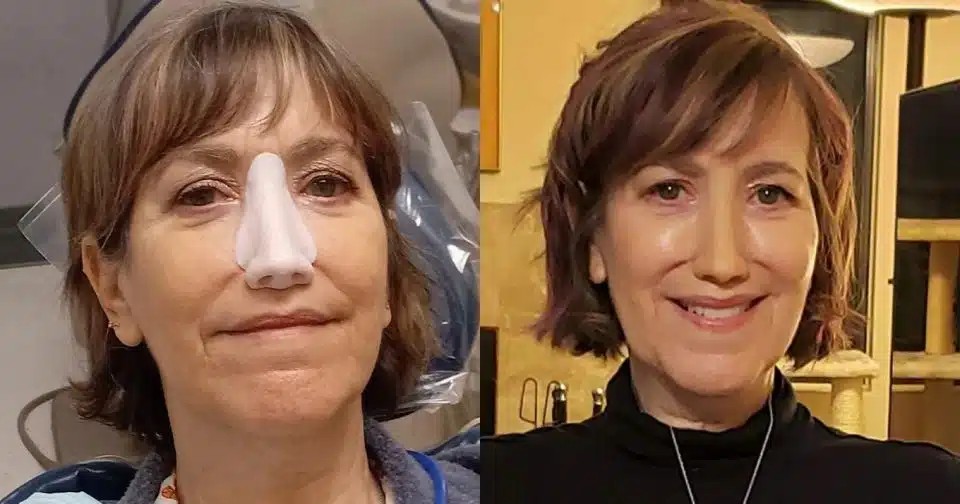 Στη συνέχεια αναφέρει: «Ο γιατρός έκανε καταπληκτική δουλειά και μου έδωσε ένα πλαστικό ομοίωμα μύτης για τη μέση του προσώπου μου, να το τοποθετώ όταν θα ανάρρωνε το τραύμα. Αρχικά πίστευα, με βάση αυτά που μου είχαν πει, ότι θα χρειαστούν τέσσερις ή πέντε μήνες για τοποθετηθεί το ειδική προσθετική μύτη μου. Δουλεύω σαν σχεδιάστρια επίπλων και κάθε μέρα πηγαίνω σε σπίτια ξένων. Χωρίς προσθετικό, πώς θα αντιμετώπιζα όλους αυτούς τους ξένους με μια τεράστια τρύπα στο πρόσωπό μου;