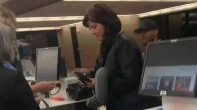 Ατάραχη, η γυναίκα έβγαλε την πιστωτική της κάρτα και πλήρωσε το εισιτήριο.