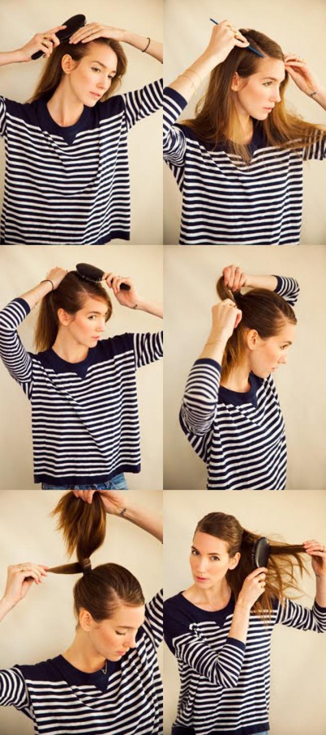 Κομψή κοτσίδα με χωρίστρα στο πλάι