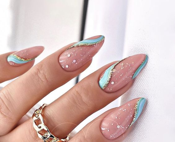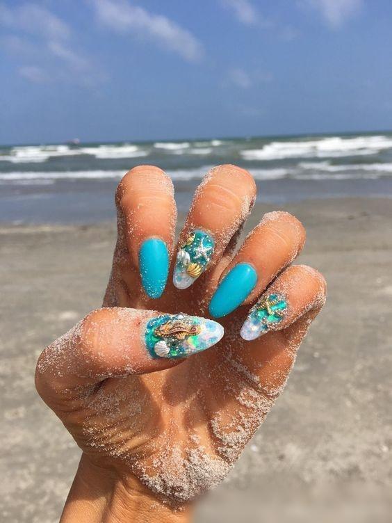 Θαλασσί νύχια με καλοκαιρινές αναπαραστάσεις