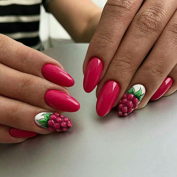 Κάνε τα νύχια σου να δείχνουν απολαυστικά, όμορφα και δροσερά, προτιμώντας ένα φούξια φωτεινό χρώμα και απογειώνοντάς τα με ένα φούξια καλοκαιρινό και άκρως ζουμερό φρούτο. Τα 3D φρούτα είναι ακόμη πιο εντυπωσιακά.