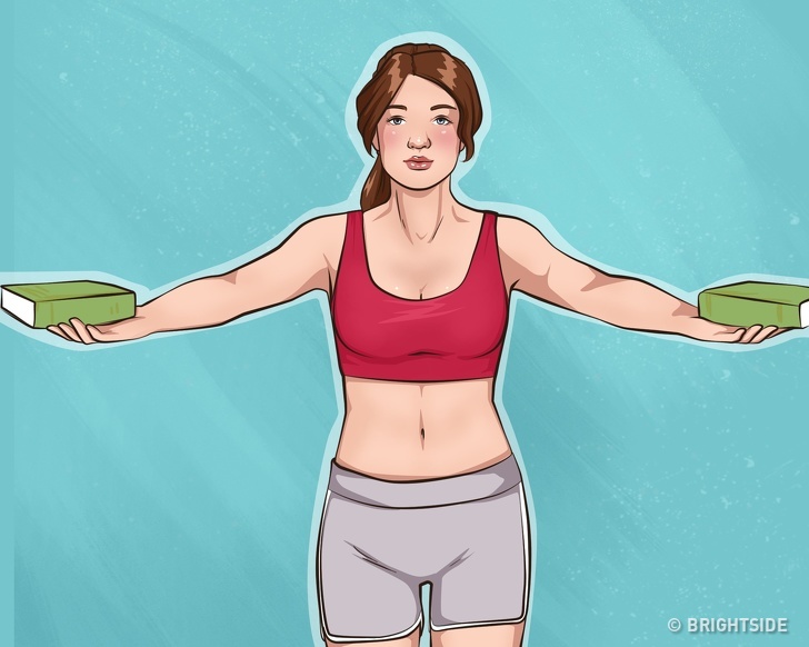 Σταθείτε όρθια και τεντώστε τα χέρια σας, ενώ έχετε τις παλάμες προς τα πάνω. Κρατήστε ένα βαρύ βιβλίο σε κάθε παλάμη, ανοίξτε τα χέρια σας προς τα πλάγια και μετά φέρτε τα μπροστά σας.