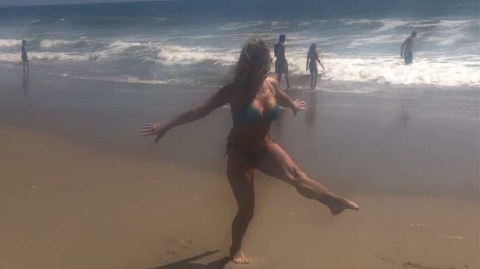 Η Ρουμάνα πρώην γυμνάστρια βρέθηκε σε παραλία και δεν έχασε την ευκαιρία να επιδείξει τις ικανότητές της, ολοκληρώνοντας μιας εντυπωσιακή «ρόδα» με τον γιο της Ντίλαν να απαθανατίζει τη σκηνή.