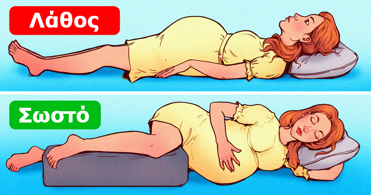 - Πολλές μητέρες το βρίσκουν πιο άνετο να τοποθετήσουν ένα μαξιλάρι ανάμεσα στα πόδια (όταν κοιμούνται στο πλευρό) καθώς κρατά τα πόδια παράλληλα και στηρίζει τους γοφούς, τη λεκάνη και τη σπονδυλική στήλη.