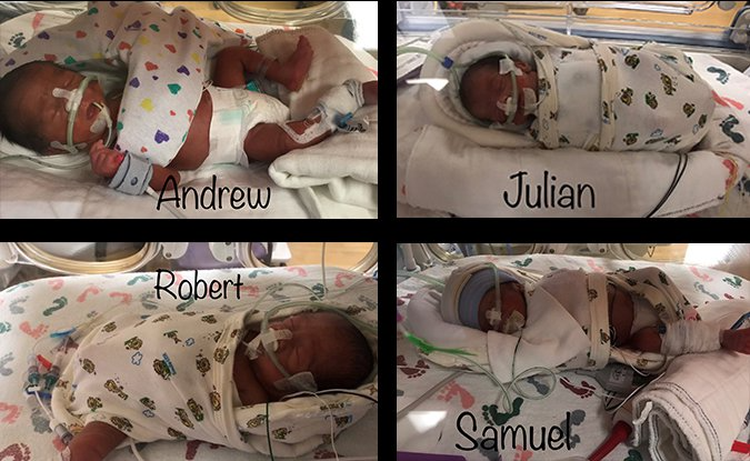Ο Andrew, o Julian, o Robert και o Samuel, όλα γεννήθηκαν με 2 λεπτά διαφοράς το ένα από το άλλο. Το νοσηλευτικό προσωπικό είχε μείνει εκπληκτο με το πόσο γρήγορα ολοκληρώθηκε η διαδικασία!