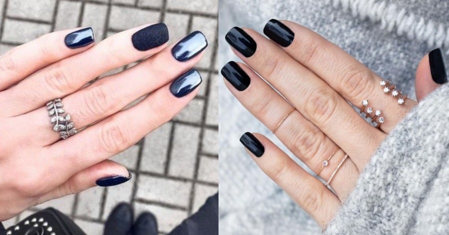 Μαύρα, σκούρα μπλε, κυπαρισσί, γκρι, σκοτωμένα λιλά. Αυτές είναι μόνο λίγες από τις σκούρες αποχρώσεις. Τα σκούρα νύχια ταιριάζουν με τον καιρό και κάνουν αντίθεση με την λευκή επιδερμίδα.