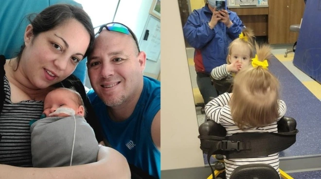 Ένα κοριτσάκι που γεννήθηκε με δισχιδή ράχη και υποβλήθηκε σε χειρουργική επέμβαση στη σπονδυλική στήλη, ενώ βρισκόταν ακόμα μέσα στη μήτρα της μητέρας του, αψήφησε τους γιατρούς που έλεγαν ότι θα μείνει παράλυτη και τώρα κάνει τα πρώτα της βήματα.