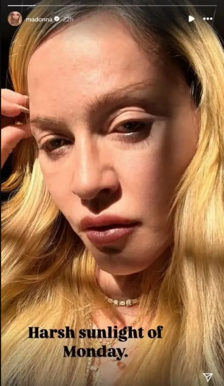 Πρόσφατα, η τραγουδίστρια ανάρτησε μια σπάνια φωτογραφία χωρίς φίλτρα, γεγονός που προκάλεσε ποικίλες αντιδράσεις από τους θαυμαστές της. Η Μαντόνα είναι γνωστή για τη φροντισμένη εικόνα που προβάλλει στο διαδίκτυο, συχνά χρησιμοποιώντας έντονο μακιγιάζ και φωτογραφικά εφέ. Ωστόσο, αυτή τη φορά παρουσίασε τον εαυτό της με πιο φυσική εμφάνιση, αποφεύγοντας τις συνήθεις επεξεργασίες.