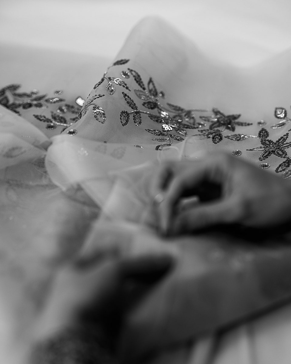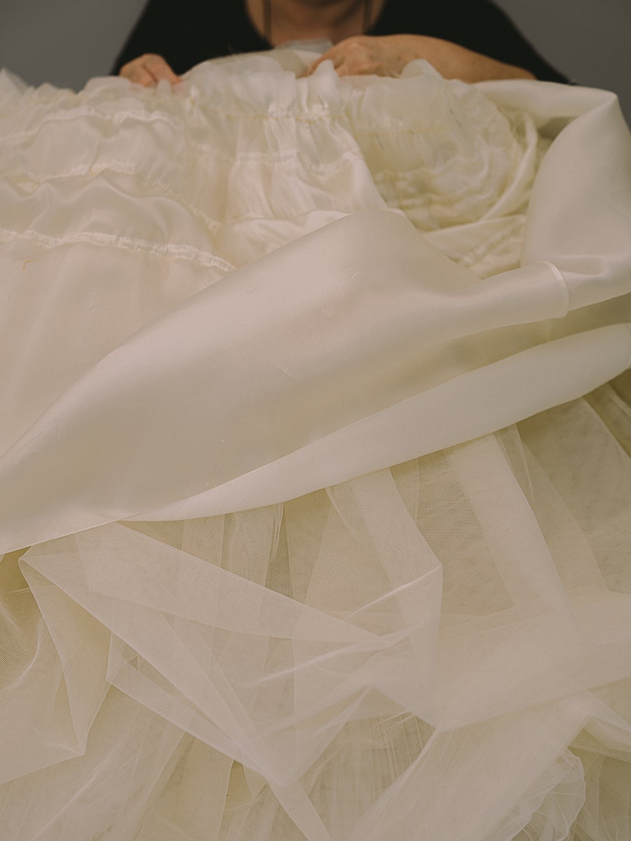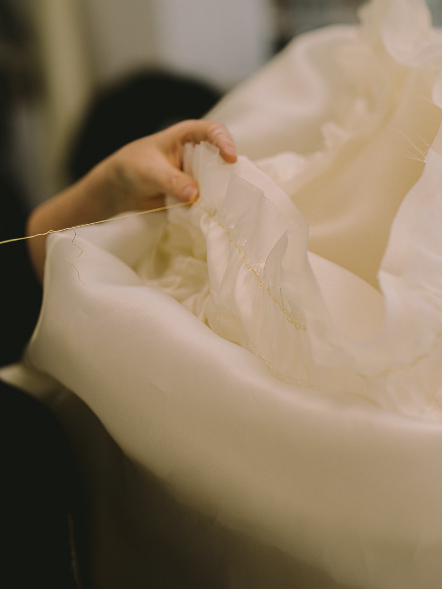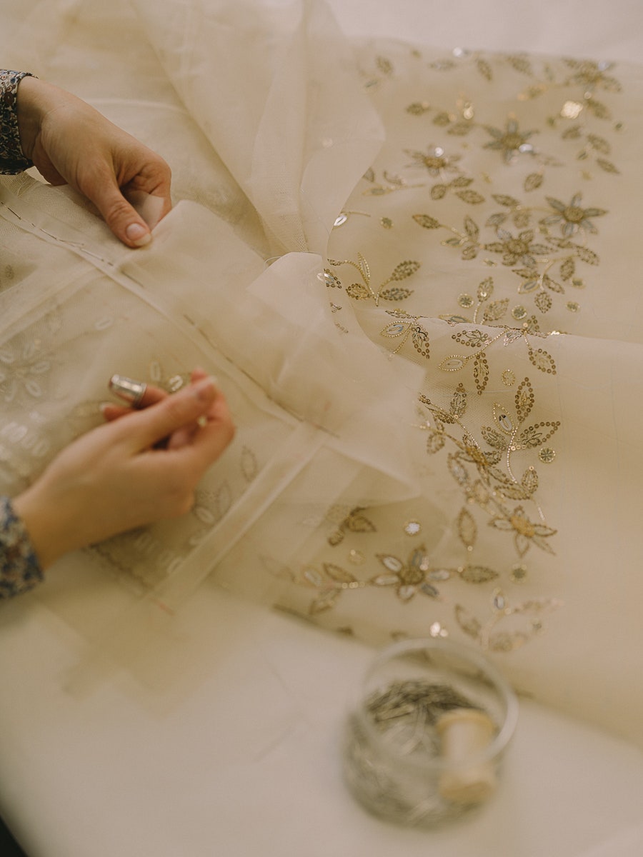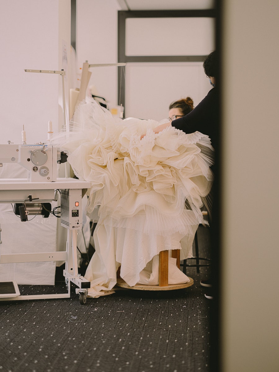 Συνολικά, αποκαλύπτει η Vogue χρειάστηκαν 1.034 ώρες δουλειάς. μεταξύ αυτών 700 μόνο για τα περίπλοκα κεντήματα.