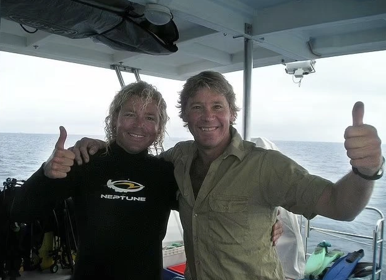 Αυτή η φωτογραφία τραβήχτηκε μόλις δύο ημέρες πριν από τον τραγικό θάνατο του Steve Irwin τον Σεπτέμβριο του 2006. Σε αυτήν φαίνεται ο κυνηγός κροκοδείλων με τον φίλο και βιολόγο Chris Jones στη θάλασσα, στις 2 Σεπτεμβρίου, ενώ οι δυο τους γύριζαν ένα ντοκιμαντέρ.