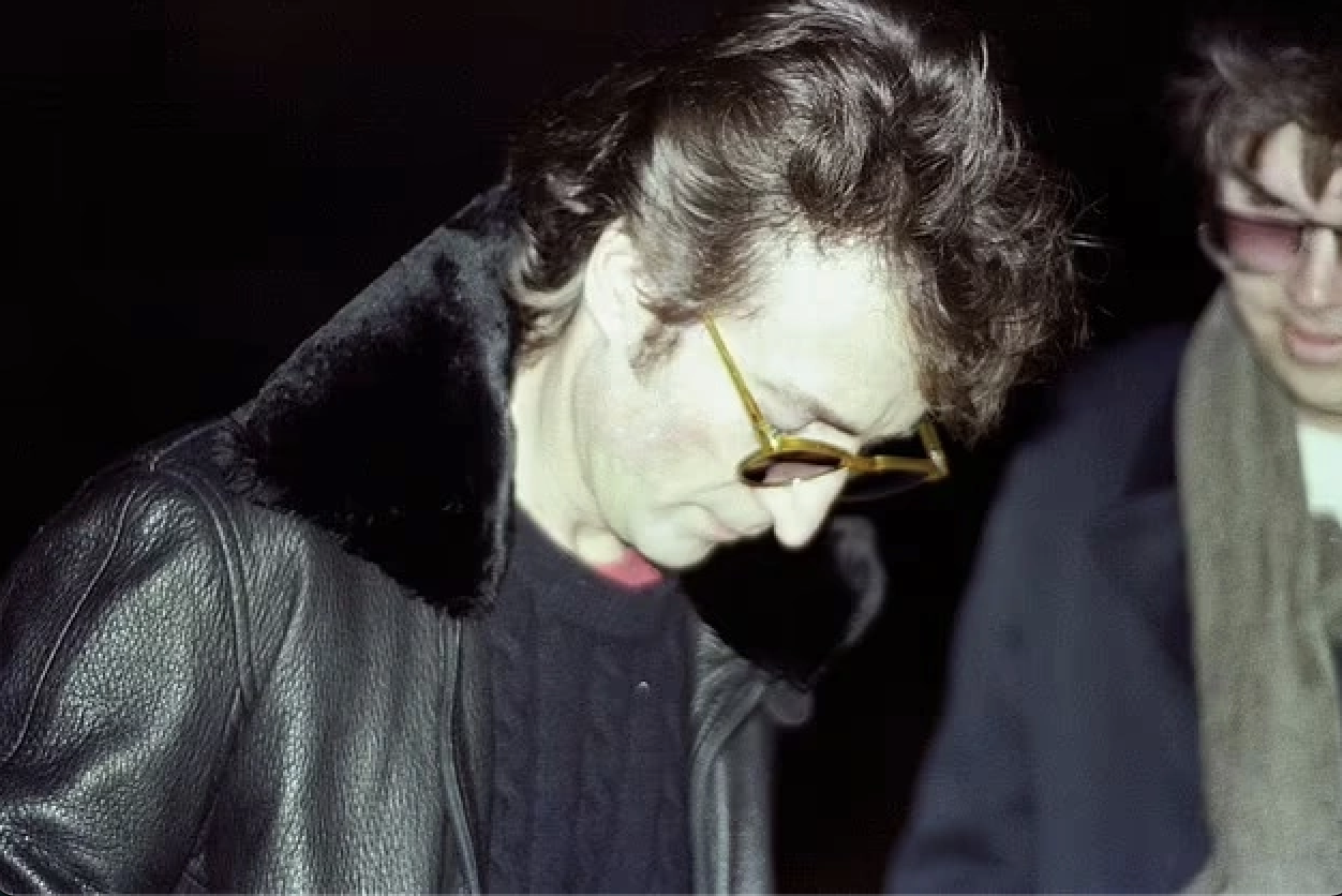 Αυτή η ανατριχιαστική τελευταία εικόνα δείχνει τον σταρ των Beatles, John Lennon, να υπογράφει το αυτόγραφο του ανθρώπου που τον δολοφόνησε λίγες ώρες αργότερα. Ο Lennon, με τα εμβληματικά του γυαλιά, φαίνεται να κοιτάζει προς τα κάτω, ενώ ο Mark David Chapman παρακολουθεί με προσοχή.