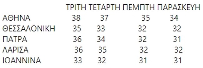 Η θερμοκρασία θα κυμανθεί από 23 έως 35-36 βαθμούς Κελσίου, ενώ στην Ήπειρο οι ελάχιστες τιμές θα είναι 3 με 4 βαθμούς χαμηλότερες.