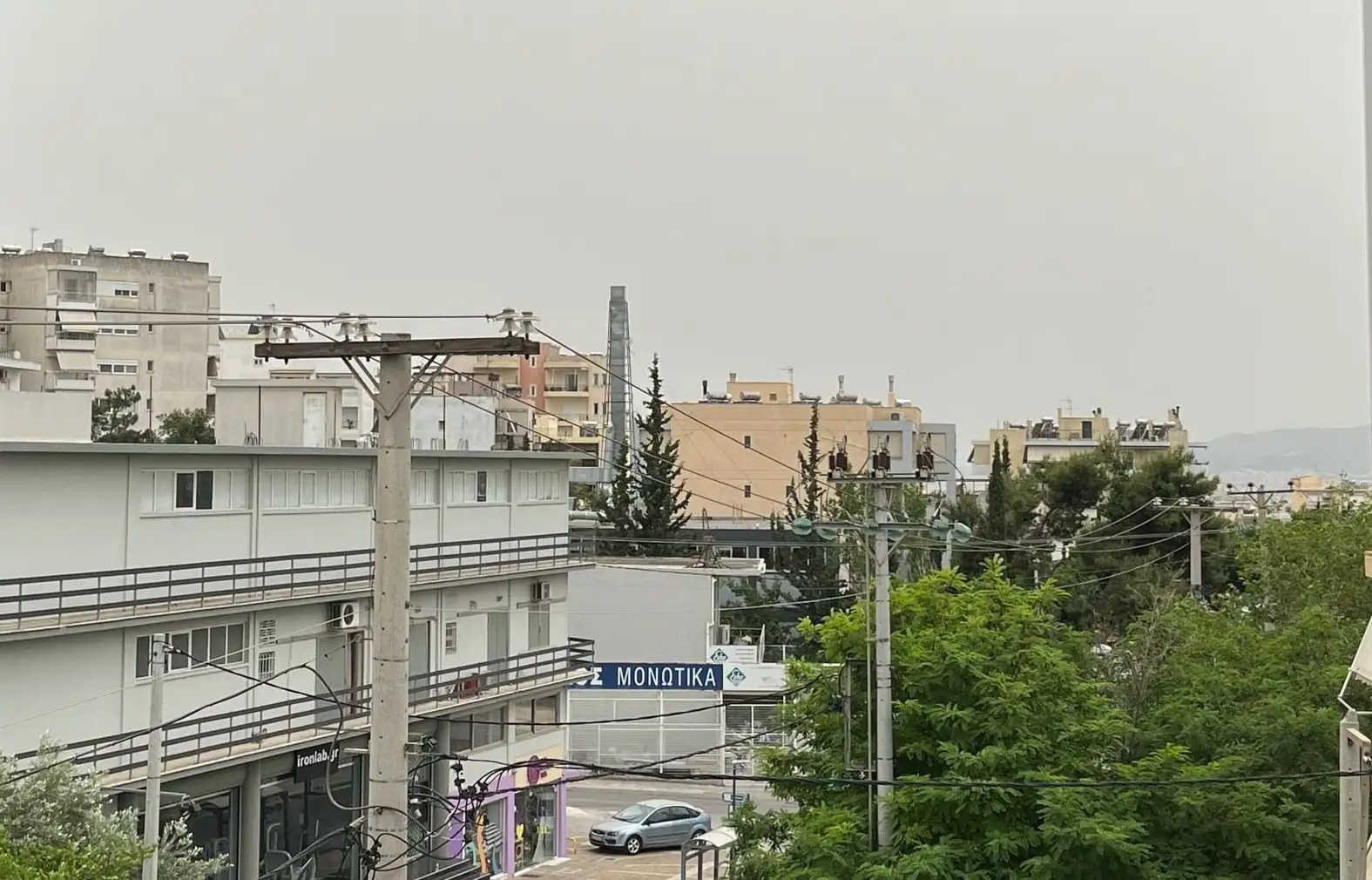 Αυτή την ώρα η ατμόσφαιρα στην Αθήνα είναι αποπνικτική λόγω της αφρικανικής σκόνης, ενώ παραπέμπει μάλλον κάποια δυστοπική ταινία και όχι σε μια ανοιξιάτικη μέρα του Μαΐου.