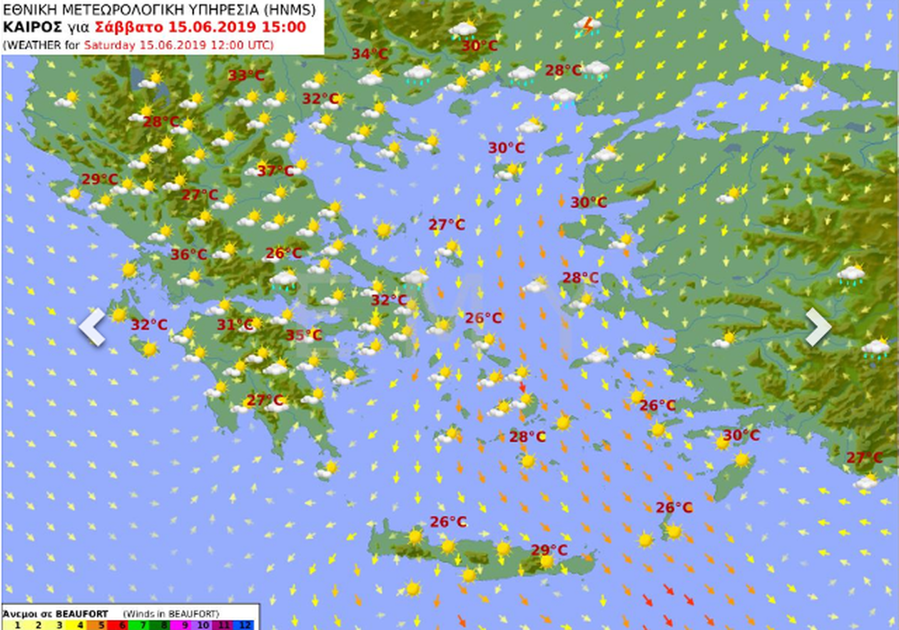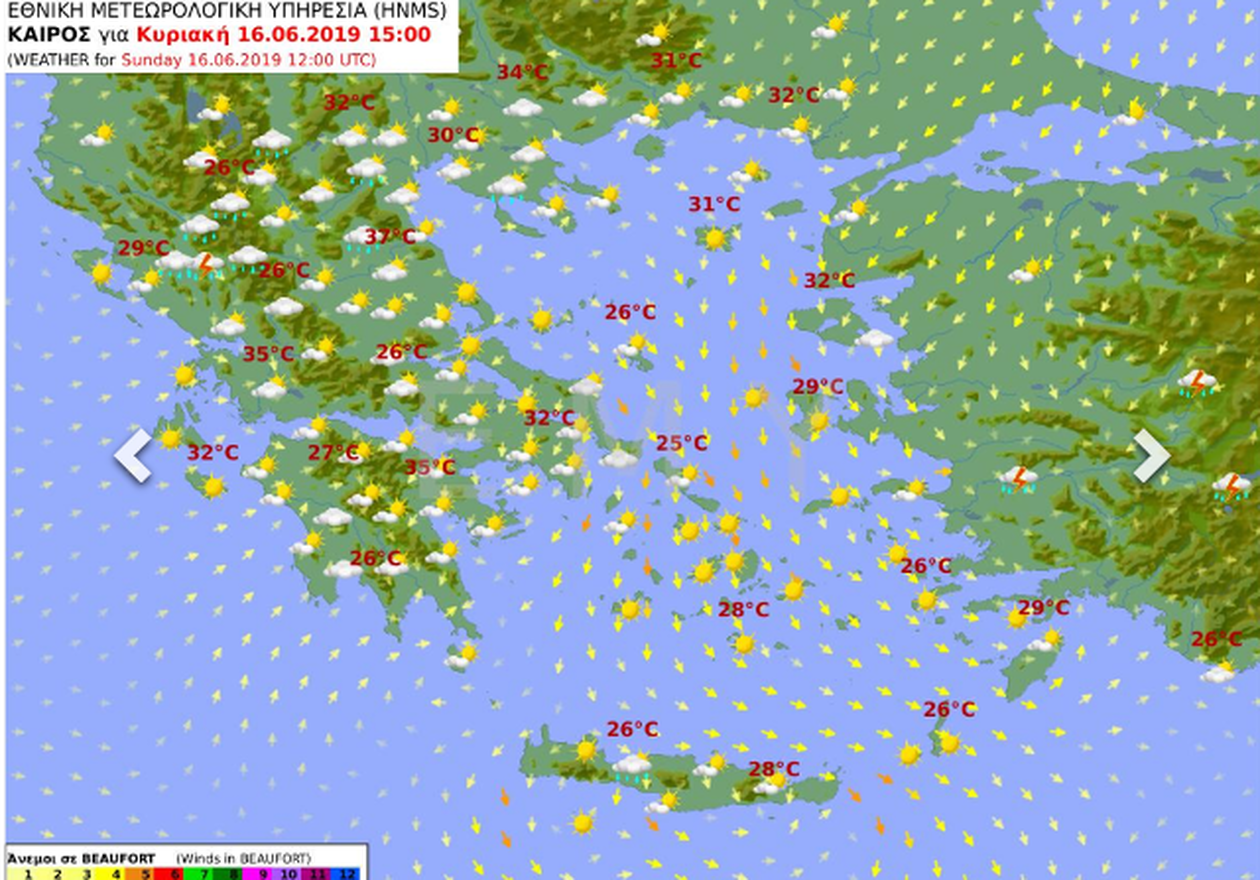 Θερμοκρασία: Από 19 έως 36 και κατά τόπους 37 βαθμούς Κελσίου.