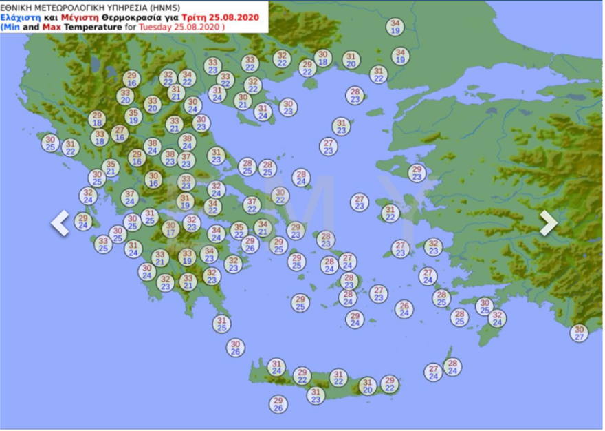 Θερμοκρασία: Από 23 έως 32 και στη νότια Κρήτη έως 35 βαθμούς Κελσίου.