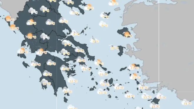Η σταδιακή πτώση της θερμοκρασίας από βορρά προς νότο θα είναι της τάξης των 10 βαθμών.