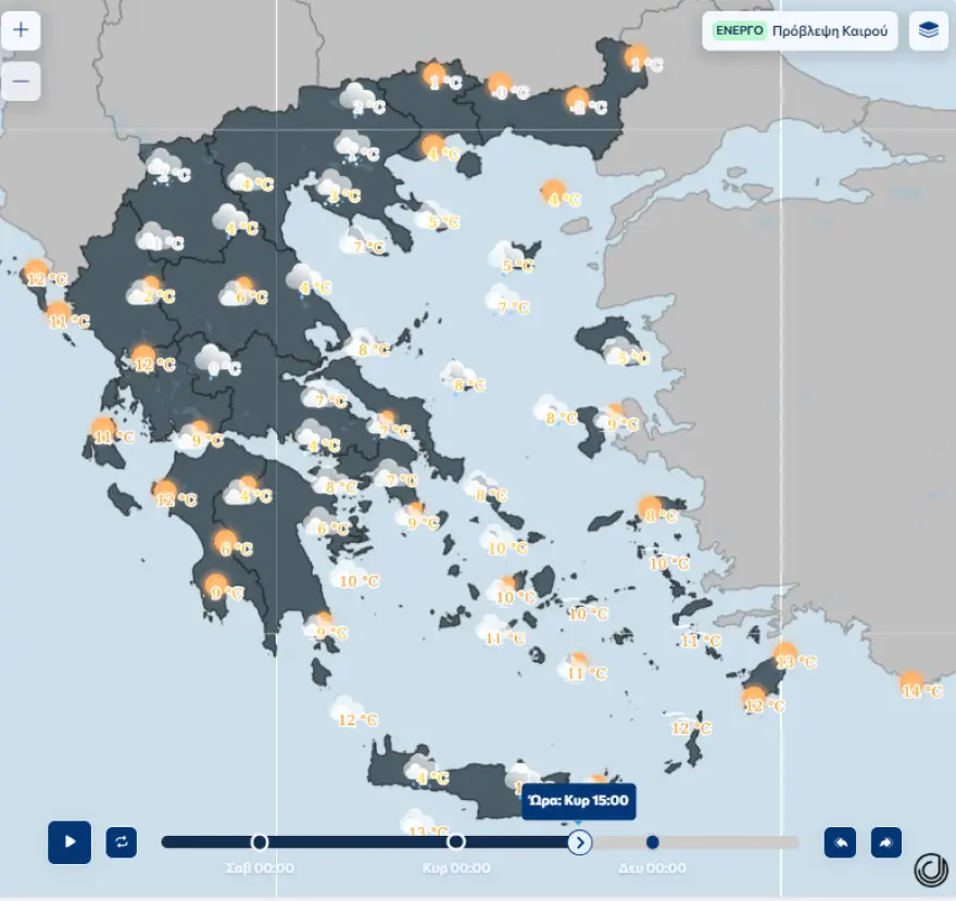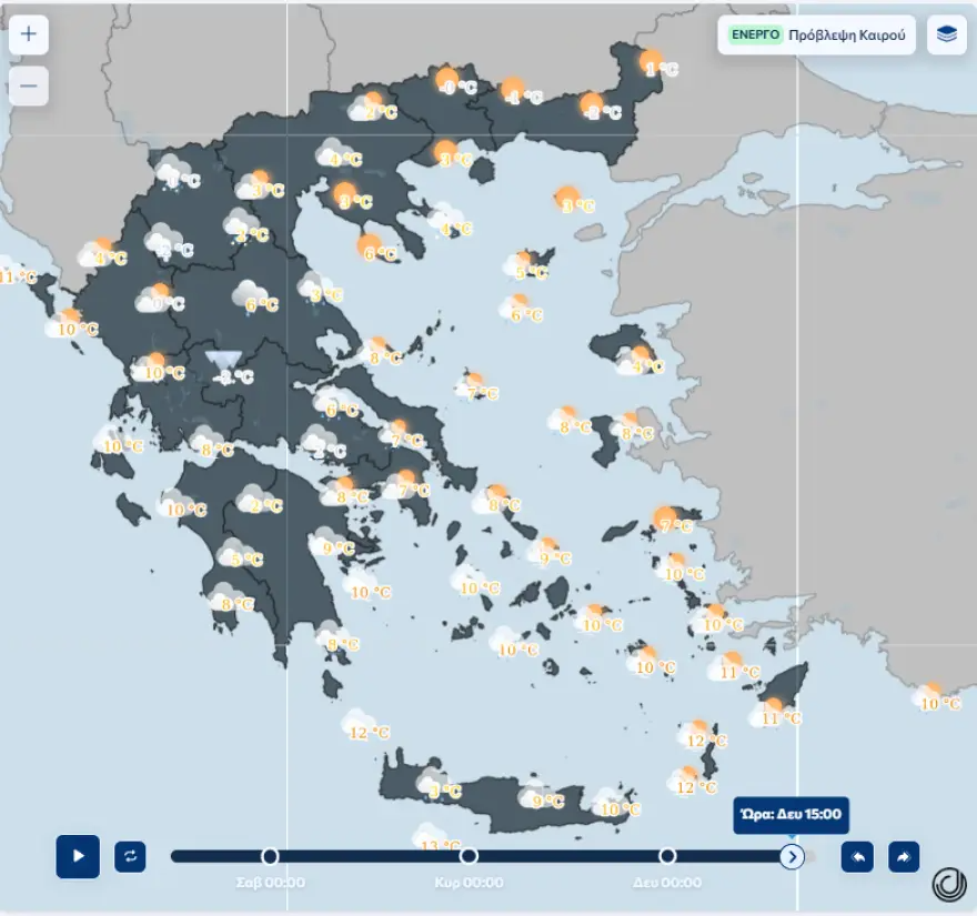 ✅Η σταδιακή πτώση της θερμοκρασίας από βορρά προς νότο θα είναι της τάξης των 10 βαθμών.