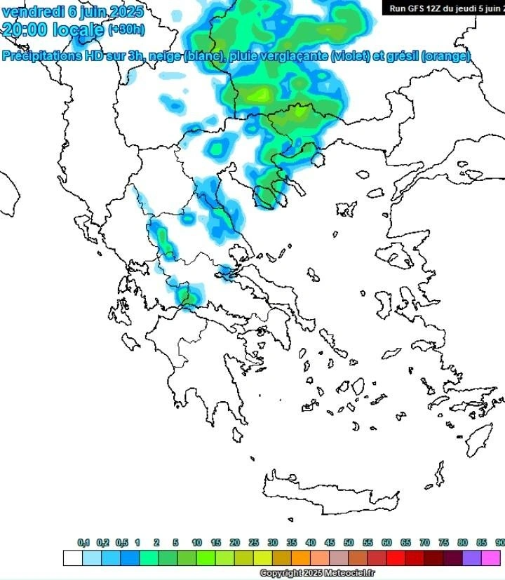 Επίσης το Weather Phenomena αναφέρει για σήμερα: Αυξάνεται η πιθανότητα για τοπικές μπόρες, σύμφωνα με το gfs!!! Eτσι λοιπόν από το απόγευμα και μετέπειτα τοπικές μπόρες σε: Θεσσαλία και δυτική Στερεά, ενώ σε κεντρική Μακεδονία και τα δυτικά τμήματα της ανατολικής Μακεδονίας, τα φαινόμενα θα είναι πιο αξιόλογα! Και μιλάμε πάντα για πολύ τοπικά φαινόμενα!