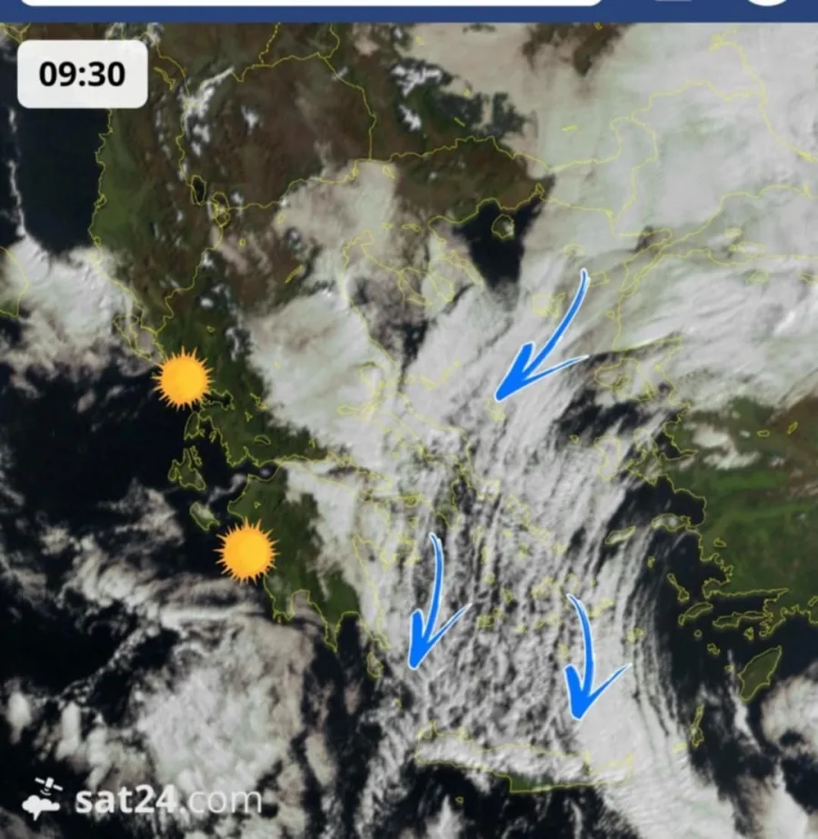 Η ψυχρή ροή βοριάδων συνεχίζει να επηρεάζει το Αιγαίο, περνώντας μέσα από τη Μαύρη Θάλασσα. Το ιδιαίτερα θερμό νερό της Μαύρης Θάλασσας για την εποχή, δημιουργεί συνθήκες που επιβαρύνουν τον καιρό στην περιοχή μας. Στις περιοχές της Μακεδονίας και της Θράκης, παρά την αναμενόμενη ηλιοφάνεια, επικρατεί συννεφιά, λόγω της υψηλής υγρασίας που μεταφέρεται από τον Βόρειο-Ανατολικό άνεμο. Ο ΒΑ άνεμος προκαλεί μια ατμόσφαιρα γεμάτη υγρασία, η οποία διασπείρεται στην Θράκη και σε μέρη της Μακεδονίας.