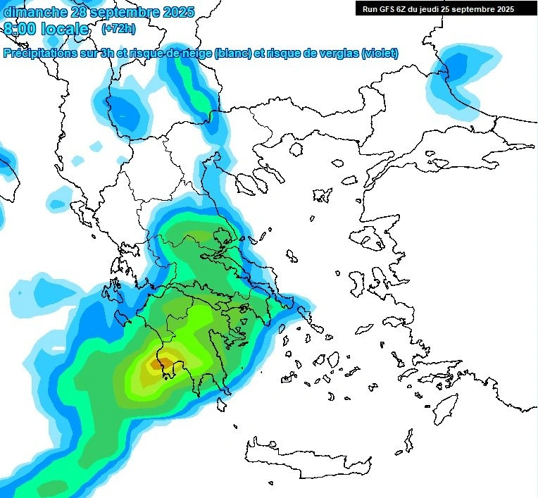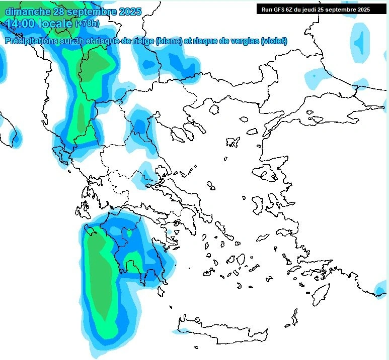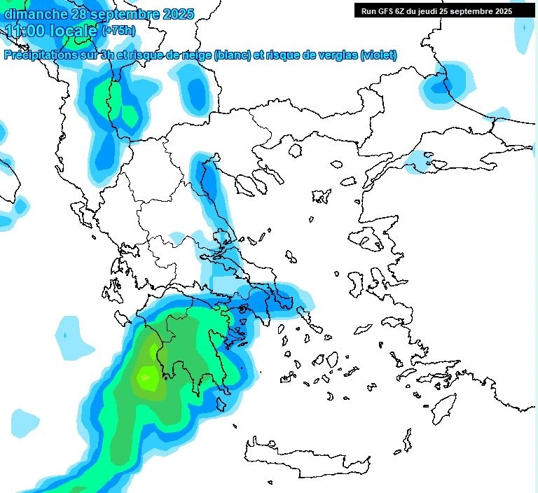Το βράδυ του Σαββάτου, όπως δείχνει ο παρακάτω χάρτης, θα βρέχει αρκετά στην Ήπειρο και στη δυτική Πελοπόννησο.
