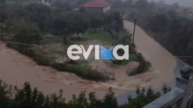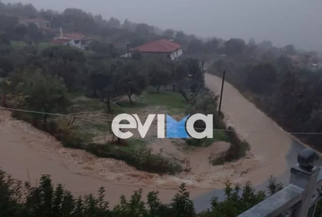 Η κακοκαιρία Elena, που βρίσκεται σε εξέλιξη στη χώρα μας, έχει προκαλέσει σοβαρά προβλήματα σε χωριό της Κύμης στην Εύβοια.