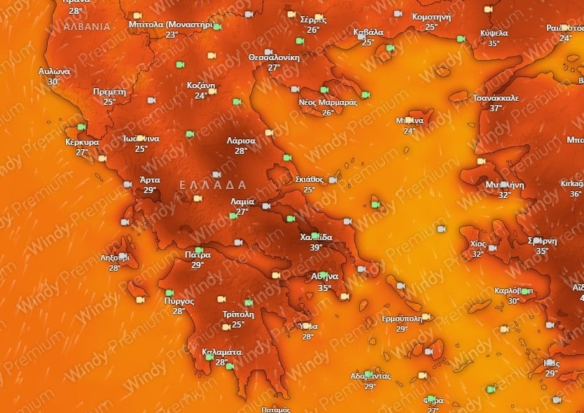 Τη Δευτέρα η θερμοκρασία θα αυξηθεί σημαντικά, φτάνοντας τους 37 βαθμούς Κελσίου, ενώ οι άνεμοι θα είναι ασθενής με μόλις 2 μποφόρ. Την Τρίτη, σύμφωνα με το windy, ο άνεμος θα μειωθεί περαιτέρω ενώ η θερμοκρασία θα φτάσει τους 39 βαθμούς Κελσίου.