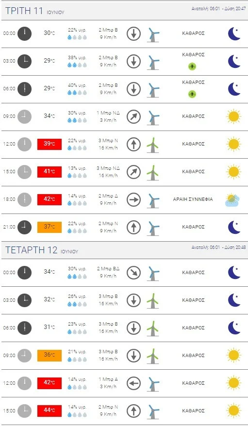 - Τρίτη, 11 Ιουνίου: 39 βαθμοί Κελσίου