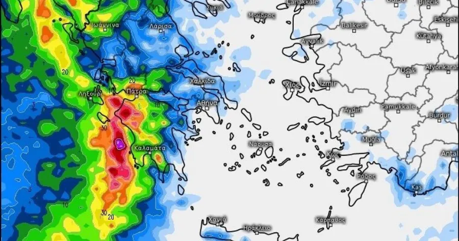 Σάββατο βράδυ – Κυριακή απόγευμα: ισχυρές καταιγίδες στη δυτική Ελλάδα.