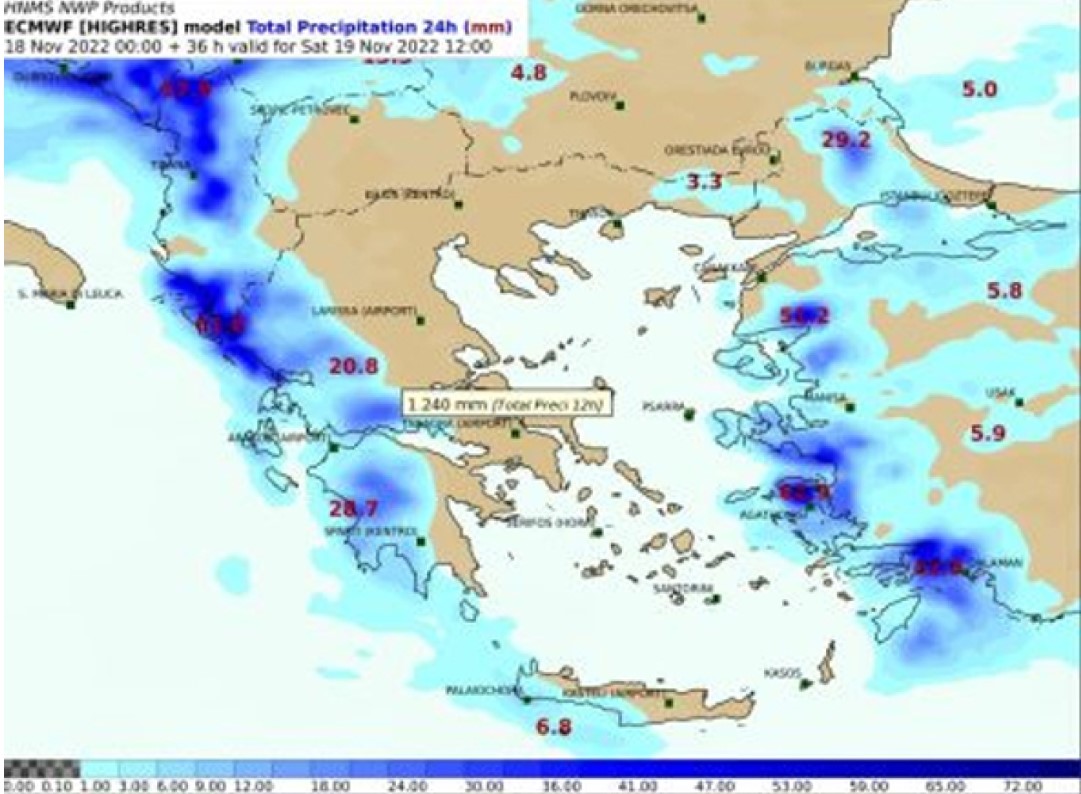 Θα πρέπει να επισημανθεί ότι η Δυτική Ελλάδα και κυρίως η Ήπειρος, τις τελευταίες ημέρες έχει δεχθεί ήδη σημαντικά ύψη βροχής και λαμβάνοντας υπ΄ όψη τα προγνωστικά δεδομένα, θα πρέπει να δοθεί ιδιαίτερη προσοχή στην ευρύτερη περιοχή.