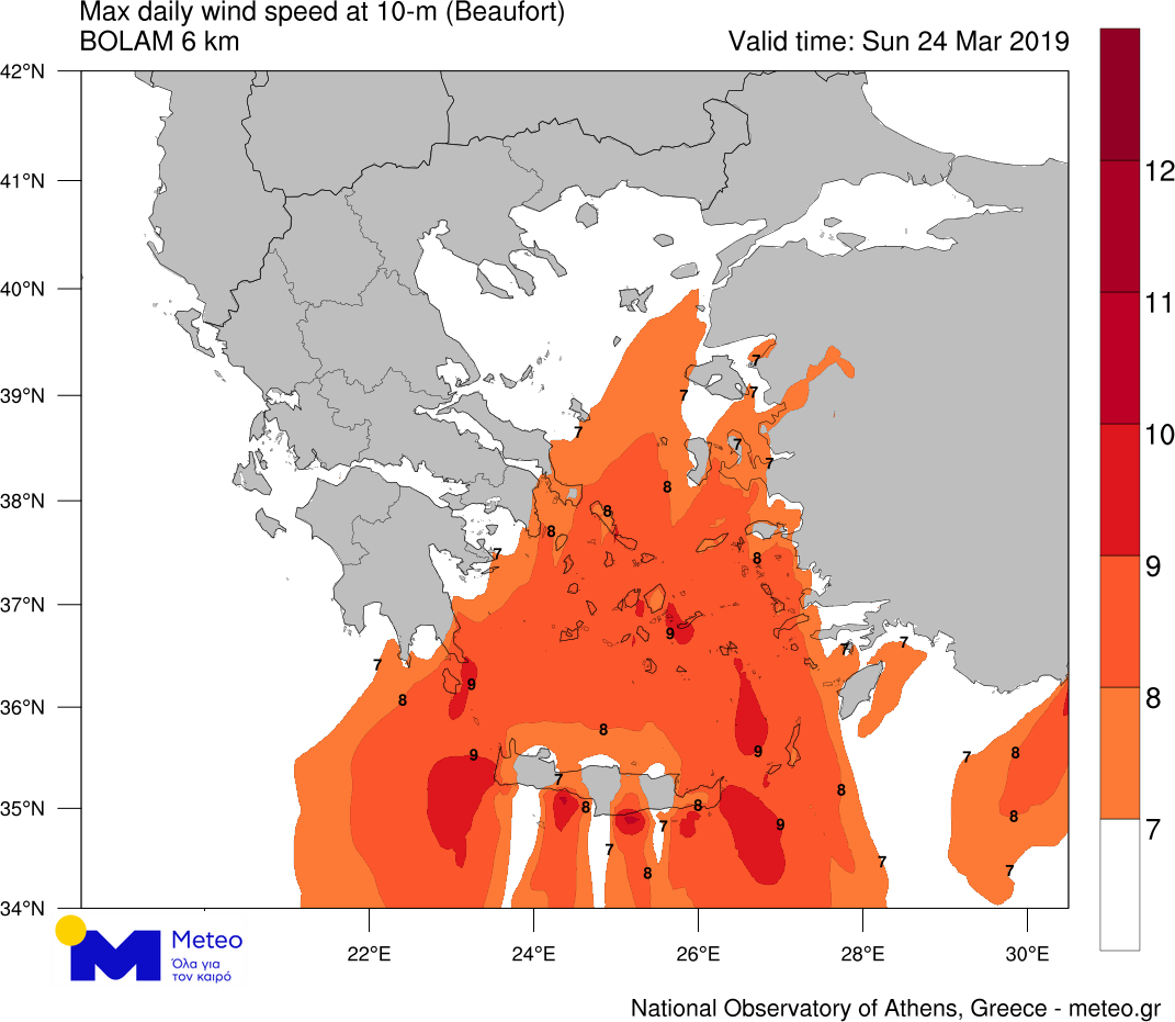 Κυριακή 24/03: Ίδιο σκηνικό και για την παραμονή της 25ης Μαρτίου, με καλές συνθήκες και ελάχιστες νεφώσεις και βροχές.