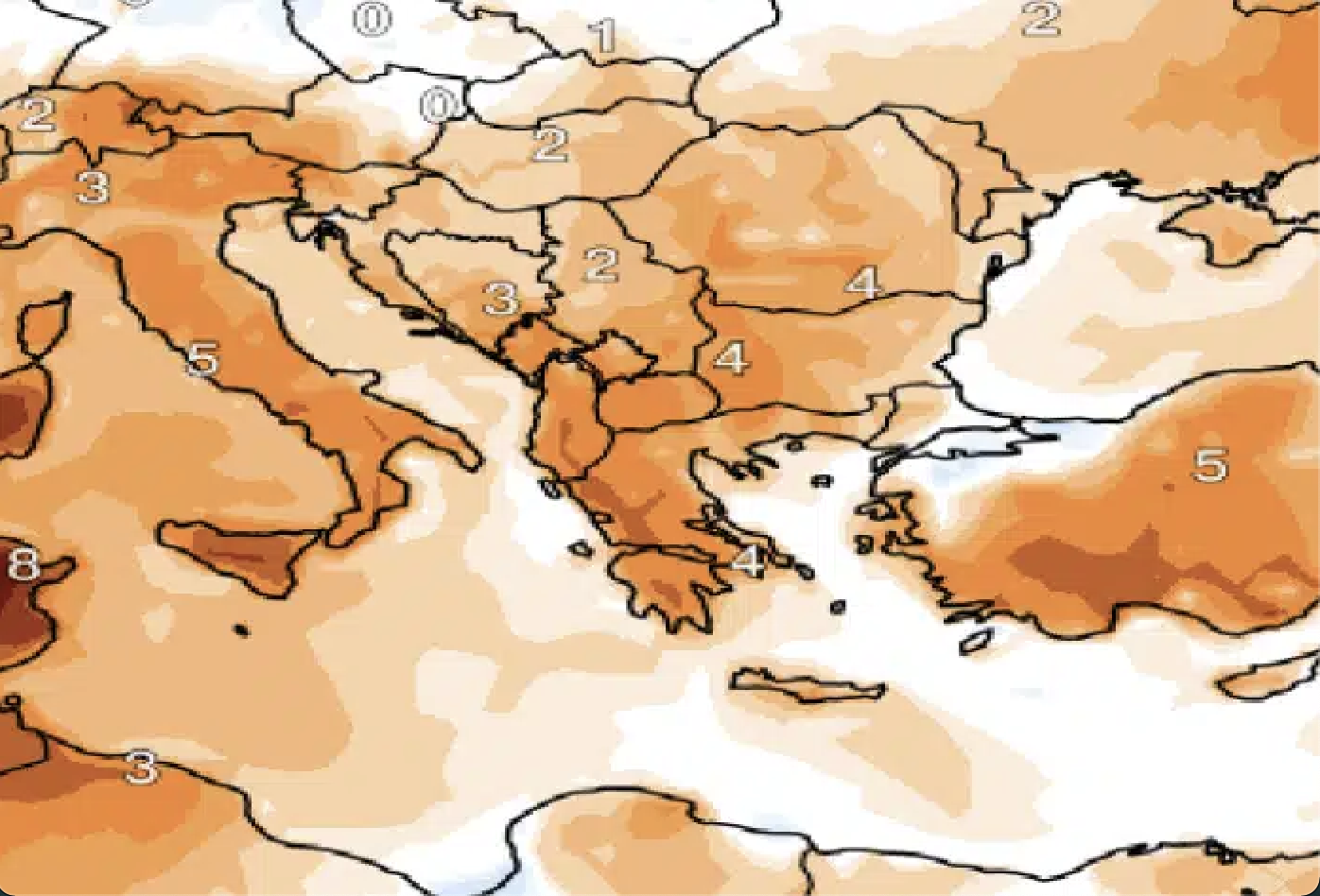 Δείξτε προσοχή διότι θα διαβάσετε και θα ακούσετε πολλά και διάφορα τις επόμενες ημέρες. Θα δείτε δραματικούς τίτλους που δεν θα έχουν καμία σχέση με την πραγματικότητα. Πρόκειται για μια θερμή εισβολή, ήπια για την χώρα μας, η οποία όπως συχνά συμβαίνει θα προέλθει από την Βόρεια Αφρική και θα επηρεάσει τις περισσότερες χώρες που βρέχονται από τη Μεσόγειο αλλά και άλλες χώρες της κεντρο-νότιας Ευρώπης που δεν βρέχονται από αυτή (βλ. κόκκινες και πορτοκαλί αποχρώσεις στον χάρτη)