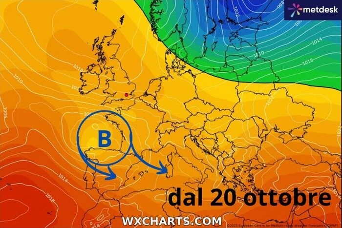 Σύμφωνα με το ευρωπαϊκό προγνωστικό μοντέλο ECMWF, γύρω στις 20 Οκτωβρίου αναμένεται η είσοδος μιας έντονης και βαθιάς ατλαντικής διαταραχής στη Μεσόγειο. Η πορεία της, με τα σημερινά δεδομένα, δείχνει να κινείται ταχύτατα προς τις κεντρικές και νότιες περιοχές, επηρεάζοντας κυρίως τις δυτικές ακτές και τα Τυρρηνικά τμήματα της Ιταλίας.