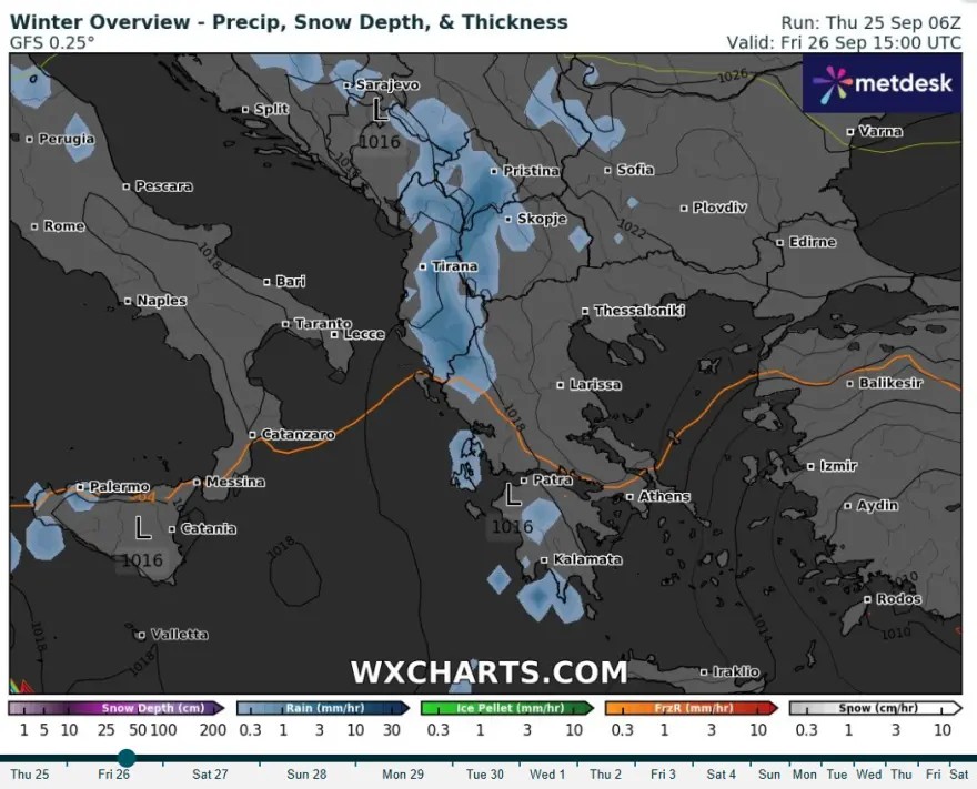 Ισχυρές βροχές και καταιγίδες προβλέπονται από αργά το βράδυ του Σαββάτου (27.9.25) μέχρι και το βράδυ της Κυριακής (28.9.25):