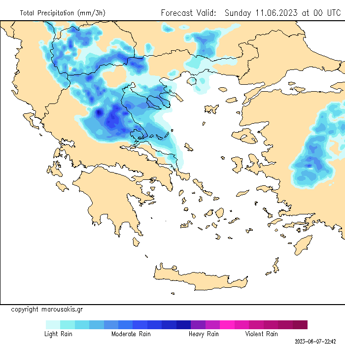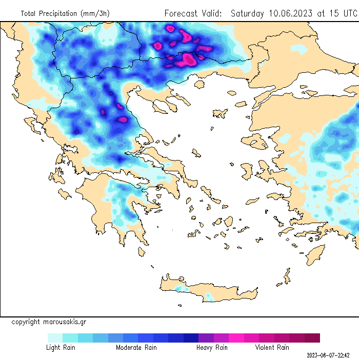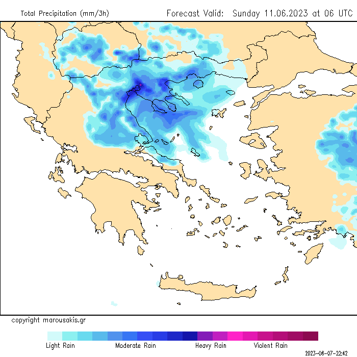 Ακολουθούν χάρτες βροχόπτωσης από το μετεωρολογικό μας μοντέλο σαν μια περιγραφή του όλου φαινομένου σημειώνοντας ωστόσο ότι οι χάρτες αυτοί είναι ενδεικτικοί και μόνο, που σημαίνει ότι μπορεί να υπάρξουν αποκλίσεις.