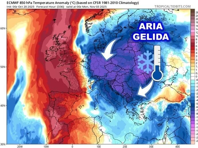 Στις βόρειες πεδιάδες και τα ηπειρωτικά της κεντρικής Ιταλίας, οι νυχτερινές θερμοκρασίες μπορεί να πέσουν κάτω από το μηδέν. Παράλληλα, εάν η κάθοδος του ψυχρού αέρα συμπέσει με τη διέλευση βαρομετρικού χαμηλού από τον Ατλαντικό, δεν αποκλείεται να δημιουργηθεί ένα εξαιρετικά δυναμικό σκηνικό με έντονα καιρικά φαινόμενα.
