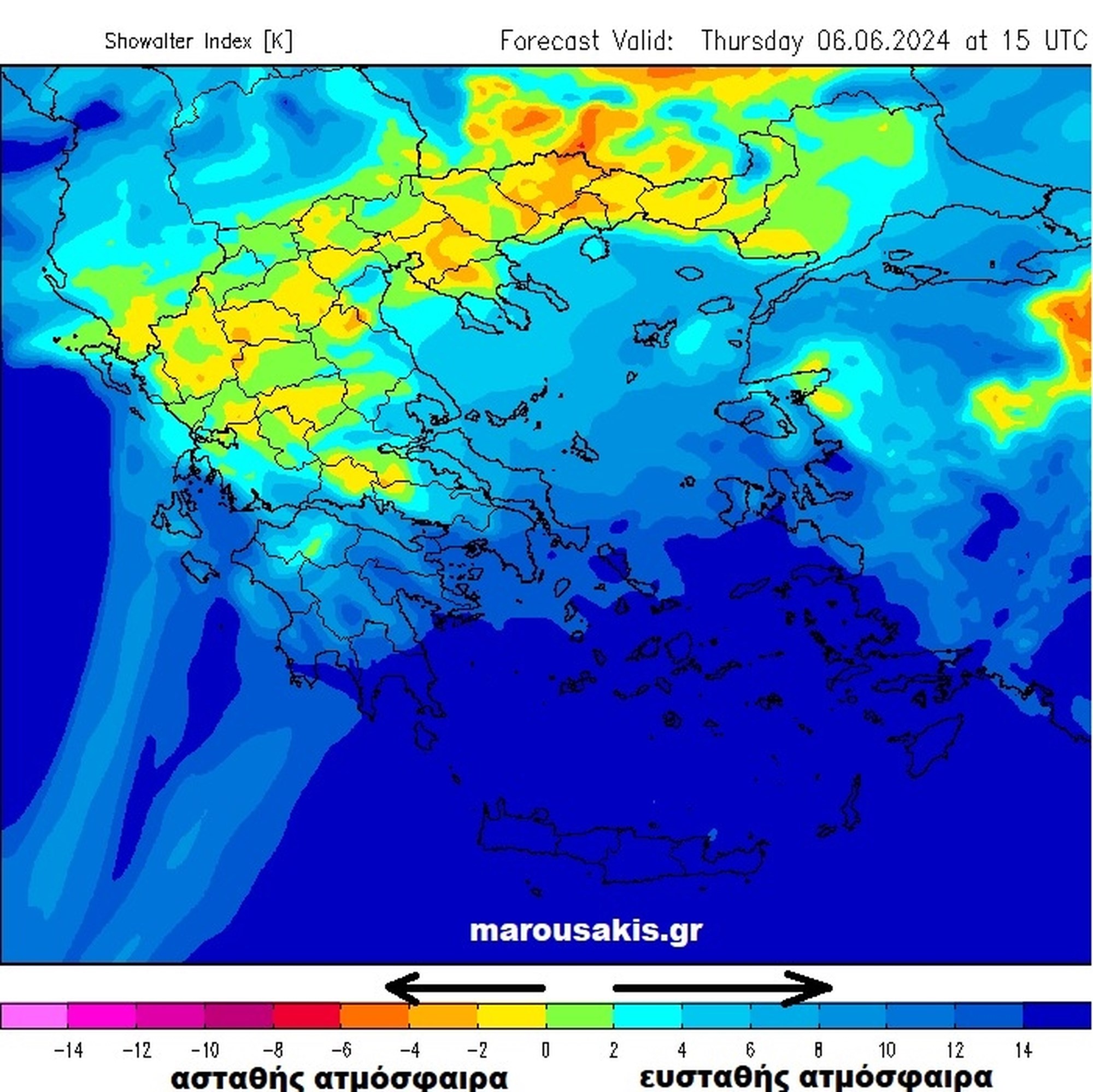 Πιο συγκεκριμένα, όπως αναφέρει σε ανάρτησή του ο μετεωρολόγος του OPEN Κλέαρχος Μαρουσάκης, το διήμερο Πέμπτης και Παρασκευής μια πιο ψυχρή αέρια μάζα ψηλά στην ατμόσφαιρα έρχεται για να συνδυαστεί με την πολύ θερμή επιφάνεια και να δώσει έντονη ατμοσφαιρική αστάθεια.