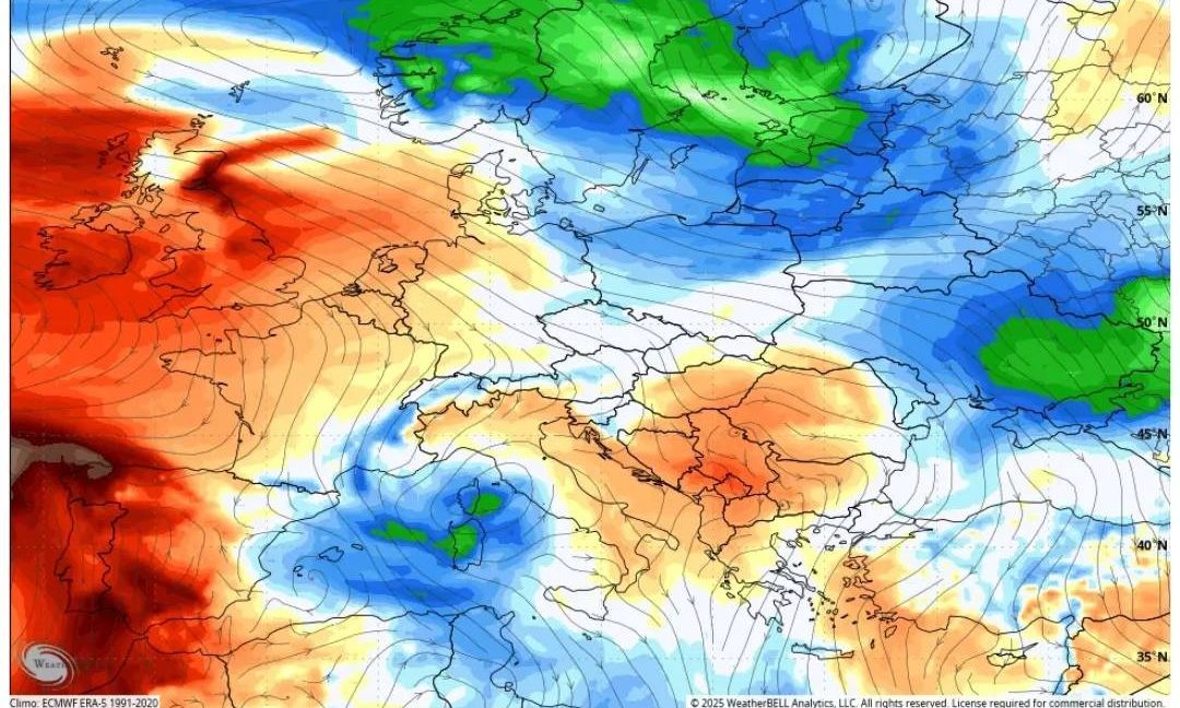 Επομένως, παρότι στο πρώτο δεκαπενθήμερο του Ιουνίου ο καιρός θα είναι αρκετά ζεστός, με τις θερμοκρασίες να κινούνται τοπικά πάνω από τα φυσιολογικά επίπεδα για τα δεδομένα της εποχής στην Ιταλία και την Νοτιοανατολική Ευρώπη, εντούτοις το δεύτερο δεκαπενθήμερο του μήνα θα μπορούσε να φέρει πολλές εκπλήξεις, εκτοπίζοντας εντελώς τις θερμές αέριες μάζες που έχουν εδραιωθεί από την Βόρεια Αφρική στην λεκάνη της Μεσογείου και αλλάζοντας εντελώς το σκηνικό του καιρού με βροχές, καταιγίδες, χαλαζοπτώσεις και χαμηλές θερμοκρασίες για τα δεδομένα της εποχής.