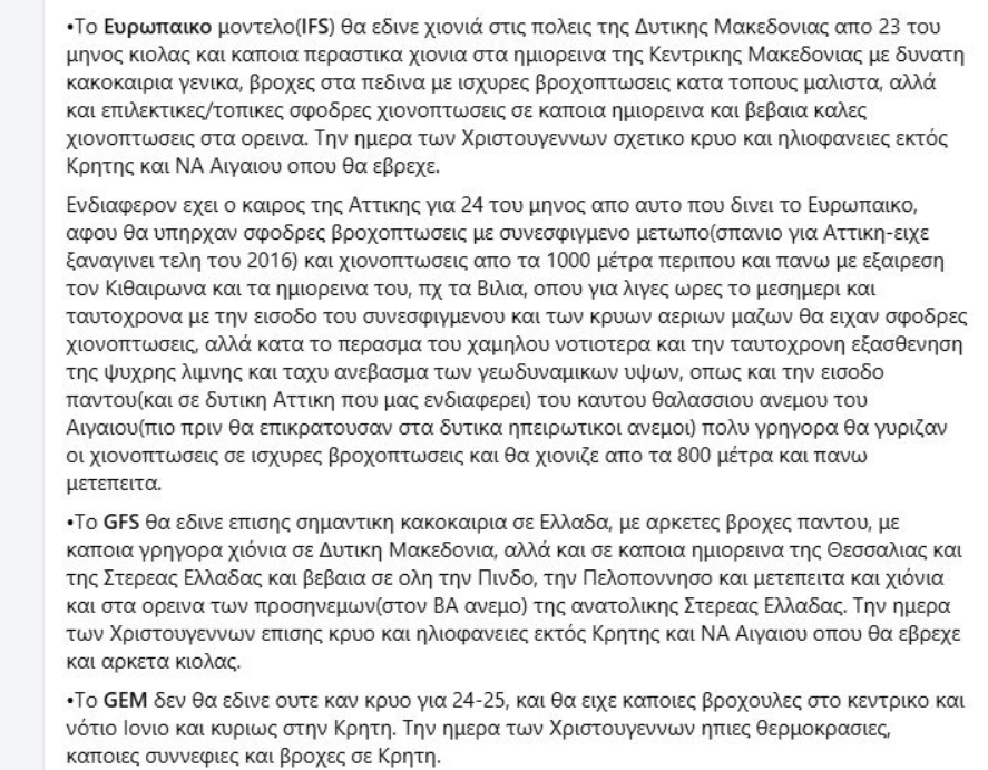 Σύμφωνα με την ανάρτηση, παραμονή Χριστουγέννων φαίνεται ένα συνεσφιγμένο μέτωπο να πλησιάζει στο Λεκανοπέδιο, το οποίο θα δώσει χιόνια παρόμοια με εκείνα του 2016.