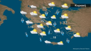 Στα ανατολικά και τα νότια της χώρας προβλέπονται νεφώσεις παροδικά αυξημένες με τοπικές βροχές και κυρίως στα θαλάσσια παραθαλάσσια τμήματα σποραδικές καταιγίδες που μέχρι τις βραδινές ώρες θα περιοριστούν στην Πελοπόννησο, στην Κρήτη και τα Δωδεκάνησα. Στην υπόλοιπη χώρα προβλέπεται γενικά αίθριος καιρός και μόνο τις μεσημβρινές και απογευματινές ώρες θα αναπτυχθούν τοπικές νεφώσεις στα ηπειρωτικά και θα εκδηλωθούν τοπικοί όμβροι κυρίως στα ορεινά. Λίγα χιόνια θα πέσουν στα ηπειρωτικά ορεινά.