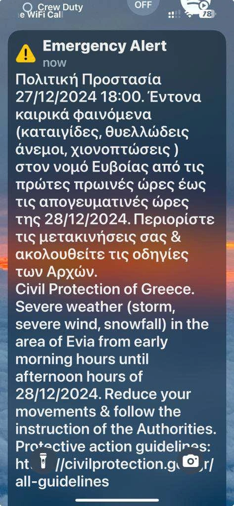 🆘 Έντονα καιρικά φαινόμενα (καταιγίδες, θυελλώδεις άνεμοι, χιονοπτώσεις) στον νομό Ευβοίας από τις πρώτες πρωινές ώρες έως τις απογευματινές ώρες της 28/12.