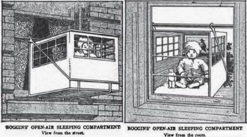 Η δεκαετία του 1930 έφερε μια τρομακτική τάση: το κλουβί του μωρού. Αυτό το κατασκεύασμα στερεωνόταν σε ένα παράθυρο του διαμερίσματος και προεξείχε προς τα έξω. Το μωρό μπορούσε να καθίσει ή να χαζέψει κλεισμένο μέσα σε αυτό για να πάρει καθαρό αέρα, ενώ οι γονείς ήταν μέσα στο σπίτι. Φοβερό!
