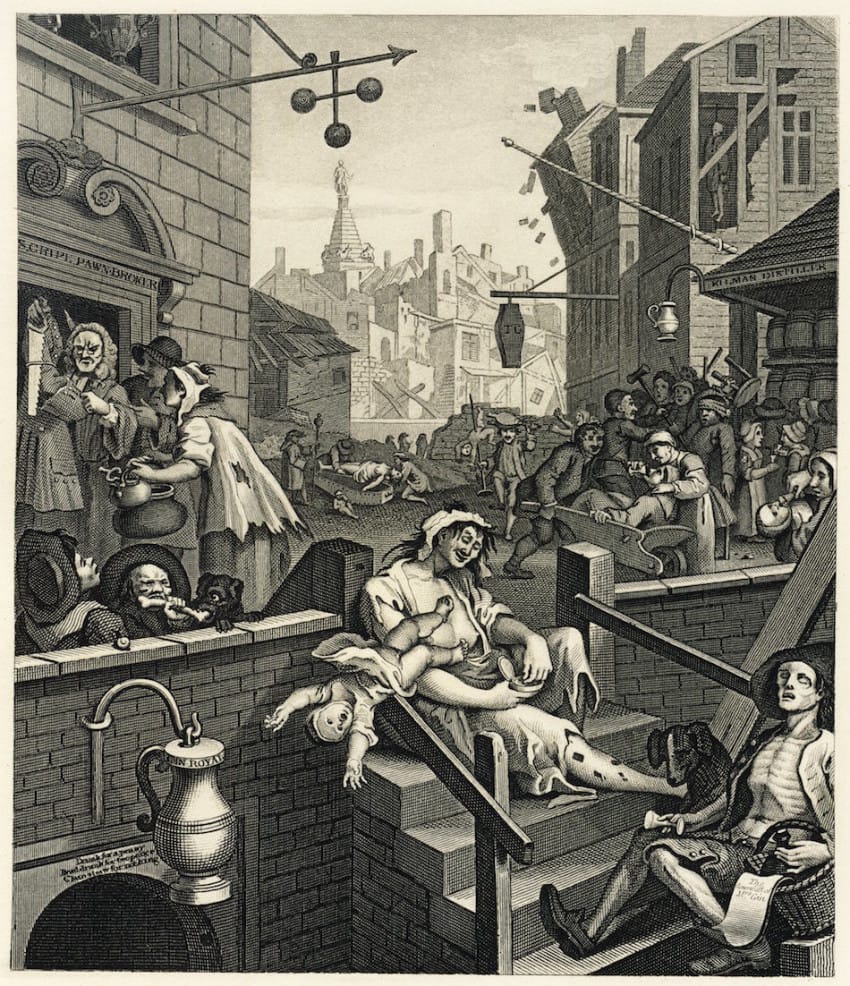 Το νερό και το γάλα είχαν μολυνθεί τον 18ο αιώνα στην Αγγλία, έτσι, οι φτωχότερες τάξεις έπιναν τζιν. Ήταν φτηνό, ήταν καθαρό και τους βοηθούσε να αντιμετωπίσουν την αντικειμενικά μίζερη ζωή τους. Τα μωρά δεν αποκλείστηκαν από την τρέλα του τζιν κατά τη διάρκεια αυτής της περιόδου.