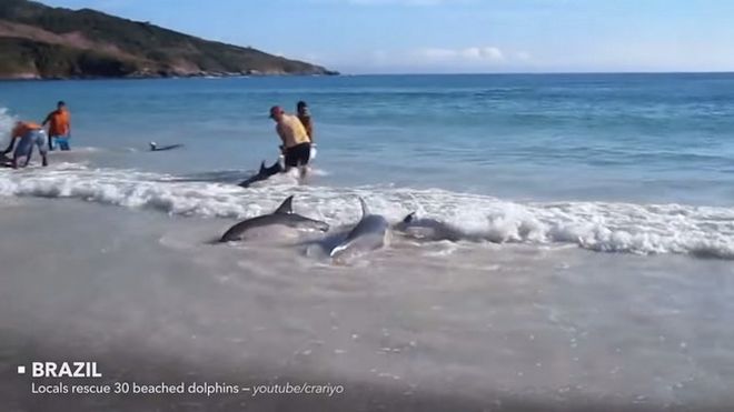 Ανήμπορα ζώα: Άνθρωποι σε μια παραλία της Βραζιλίας βοήθησαν 30 δελφίνια να επιστρέψουν στη θάλασσα